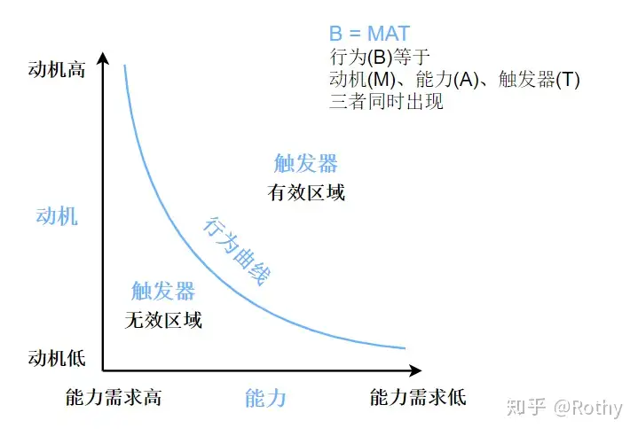用户需要意识到触发的存在,明白触发引发的结果是做出预期行为,并且用户的动机和能力要高于临界值才能激活触发并做出行为。